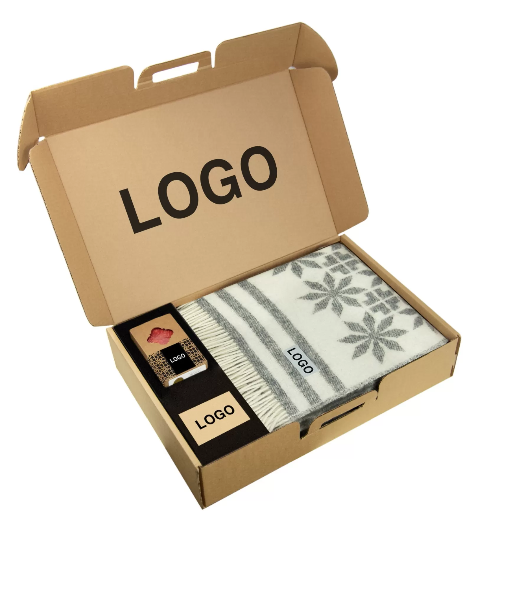 Додаткові послуги: Персоналізована етикетка на пледі з логотипом, персоналізована наклейка на свічці, персоналізована упаковка подарункового набору, вітальна листівка тощо.