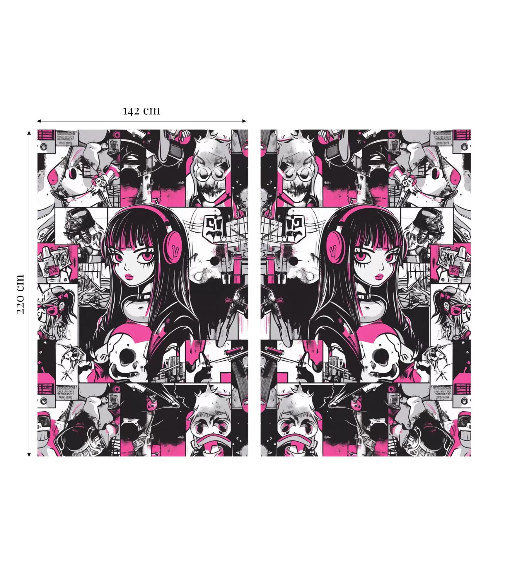 Загальна ширина комплекту штор становить приблизно 284 см, кожна штора має ширину приблизно 142 см.