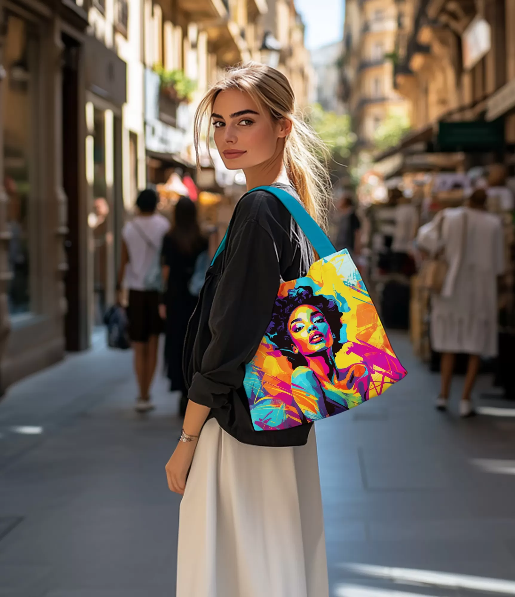 Ця барвиста сумка з портретним принтом стане чудовим подарунком для мами, сестри чи подруги, яка цінує унікальні та виразні аксесуари. Її сучасний дизайн і функціональність зачарують кожного, хто шукає яскраві акценти для свого повсякденного життя. Це ідеальний вибір для дня народження, свят або як особливе доповнення до щоденного стилю.
