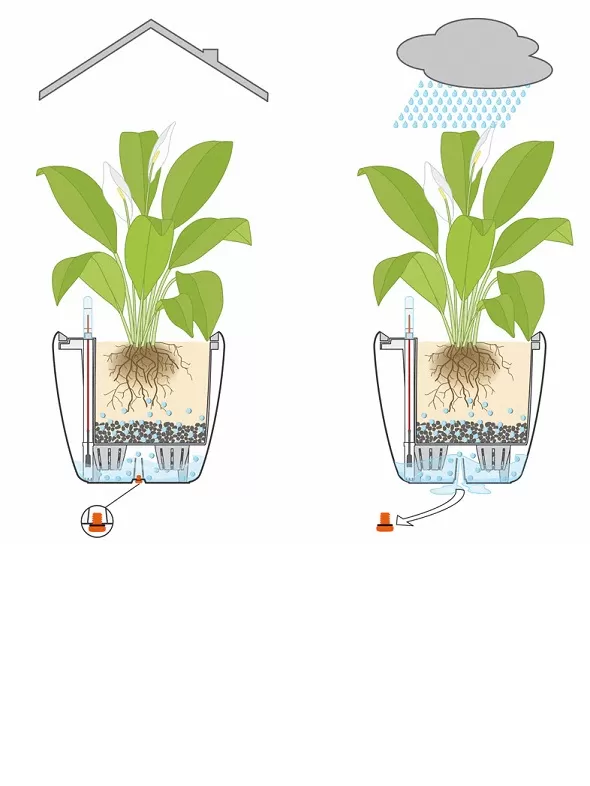 Усі горщики LECHUZA мають зовнішній горщик і систему поливу, що забезпечує кращий ріст рослин.