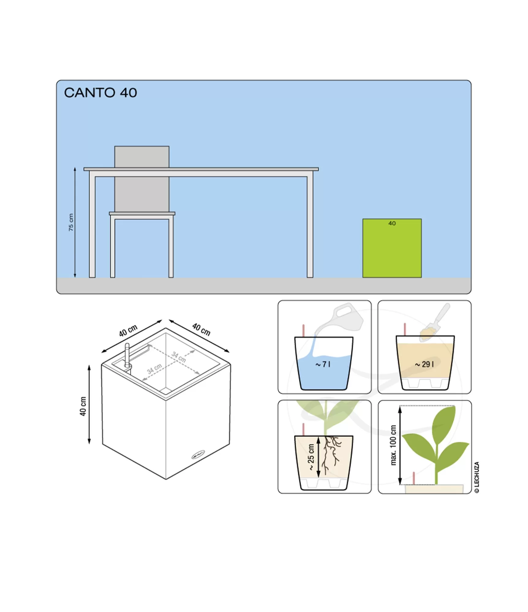 Усі вазони LECHUZA мають зовнішній вазон і систему поливу, яка забезпечує кращий ріст рослин.