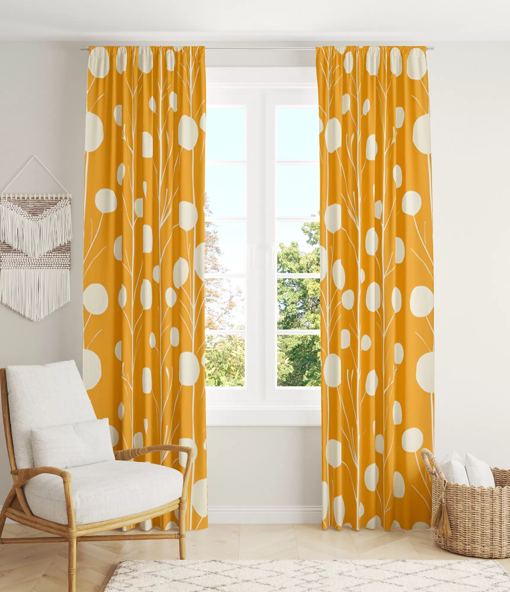 Ці нічні штори, прикрашені абстрактними білими візерунками на насиченому жовтому фоні, принесуть у ваш інтер’єр елегантність і тепло. Штори з тканини BLACKOUT не лише блокують світло, а й допомагають створити затишну атмосферу, яка забезпечує приватність. Контрастне поєднання жовтого та білого кольорів додає дизайну сучасності та вишуканості, що пасує як для традиційних, так і для сучасних інтер’єрів.