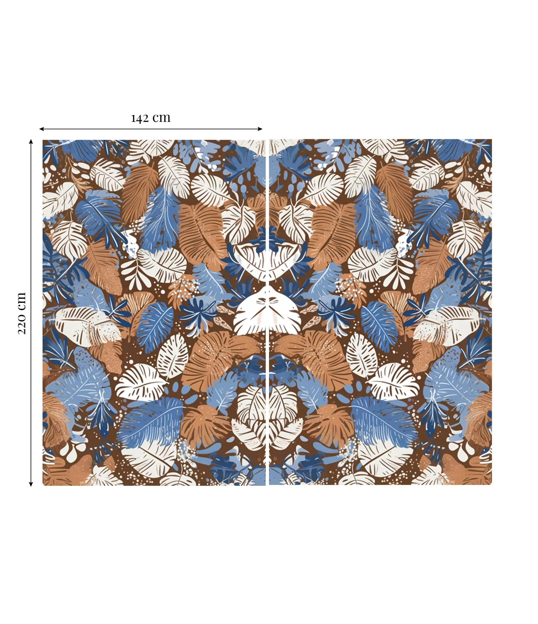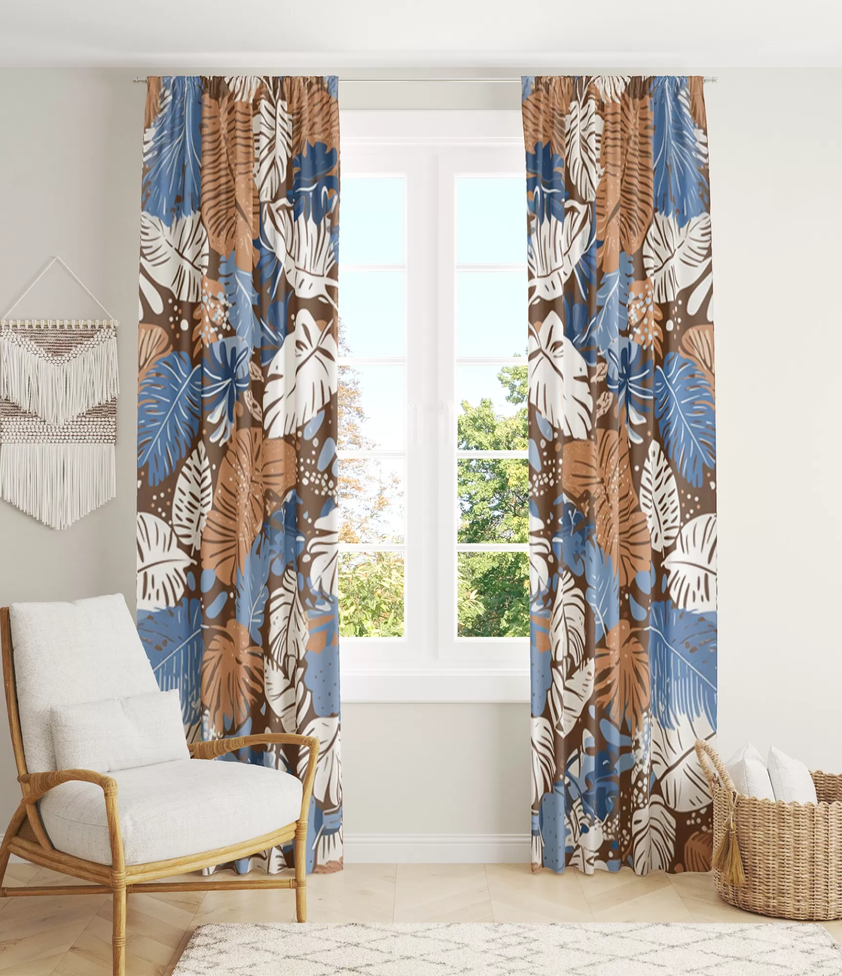 Ці блекаут штори, що виділяються листяним узором із зображенням пальмових листків різних відтінків, надають вашому інтер'єру елегантний та природний акцент. Узірок, який нагадує ботанічну ілюстрацію, не лише додає тонкого ретро-шарму, але й створює гармонійну атмосферу в просторі. Синій, коричневий та кремовий кольори утворюють чудово збалансований дизайн, який підійде як для світлих, так і для темніших інтер'єрів.