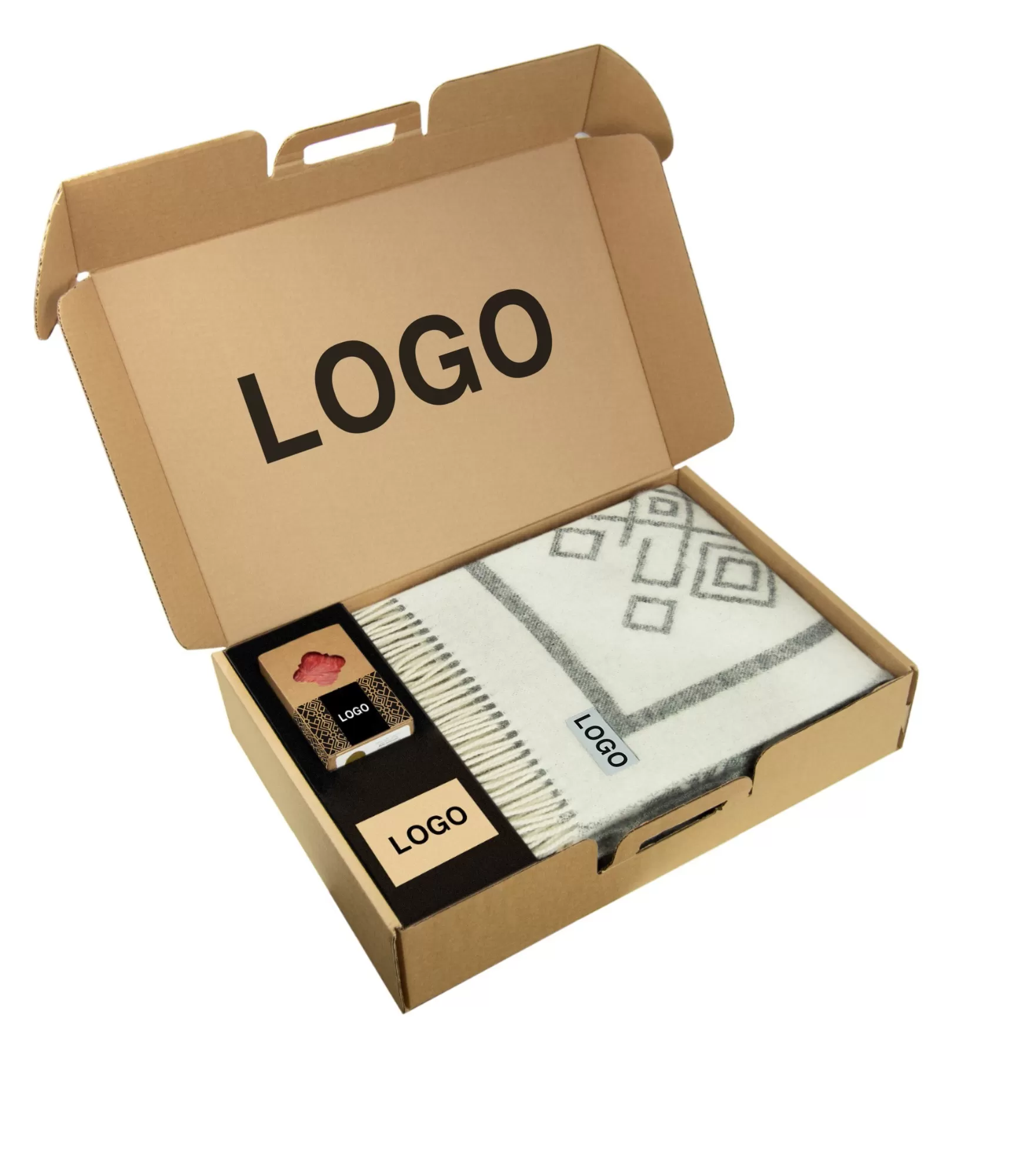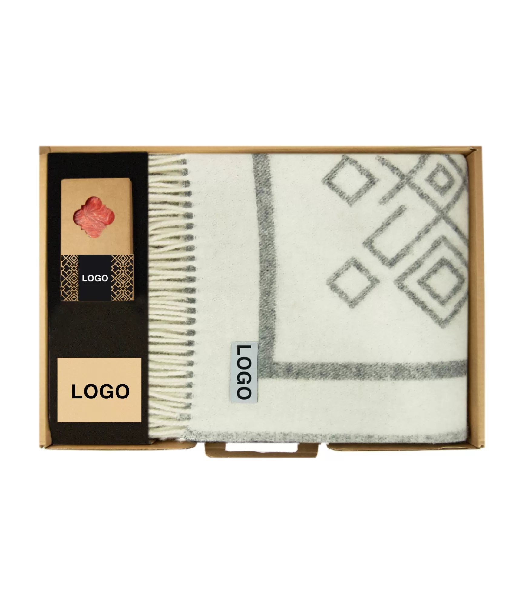Персоналізовані бізнес-подарунки - набори з пледами та свічками. Цей набір є відмінним вибором для ділового подарунка.