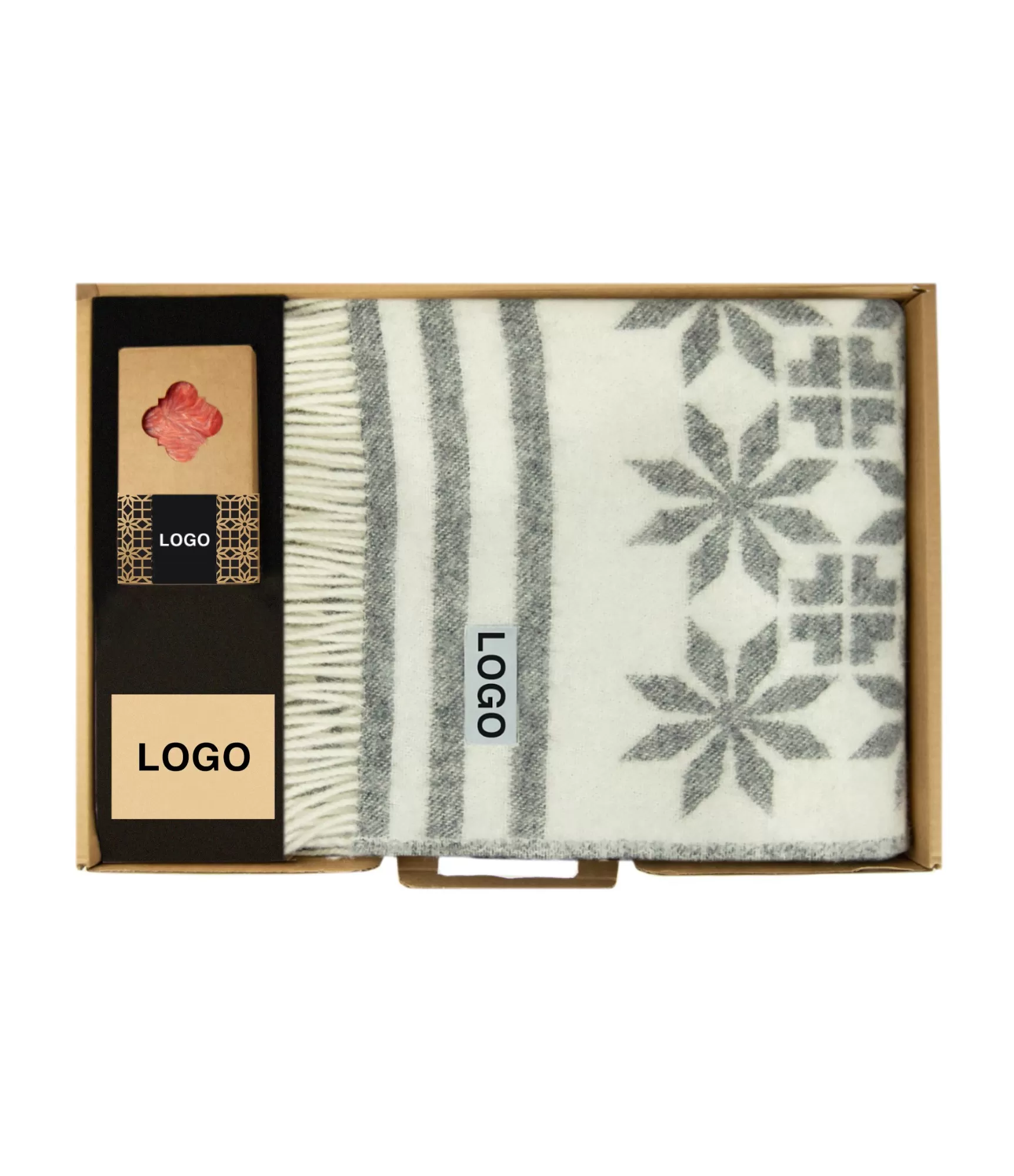 Персоналізовані бізнес-подарунки - набори з пледами та свічками. Цей набір є відмінним вибором для ділового подарунка.