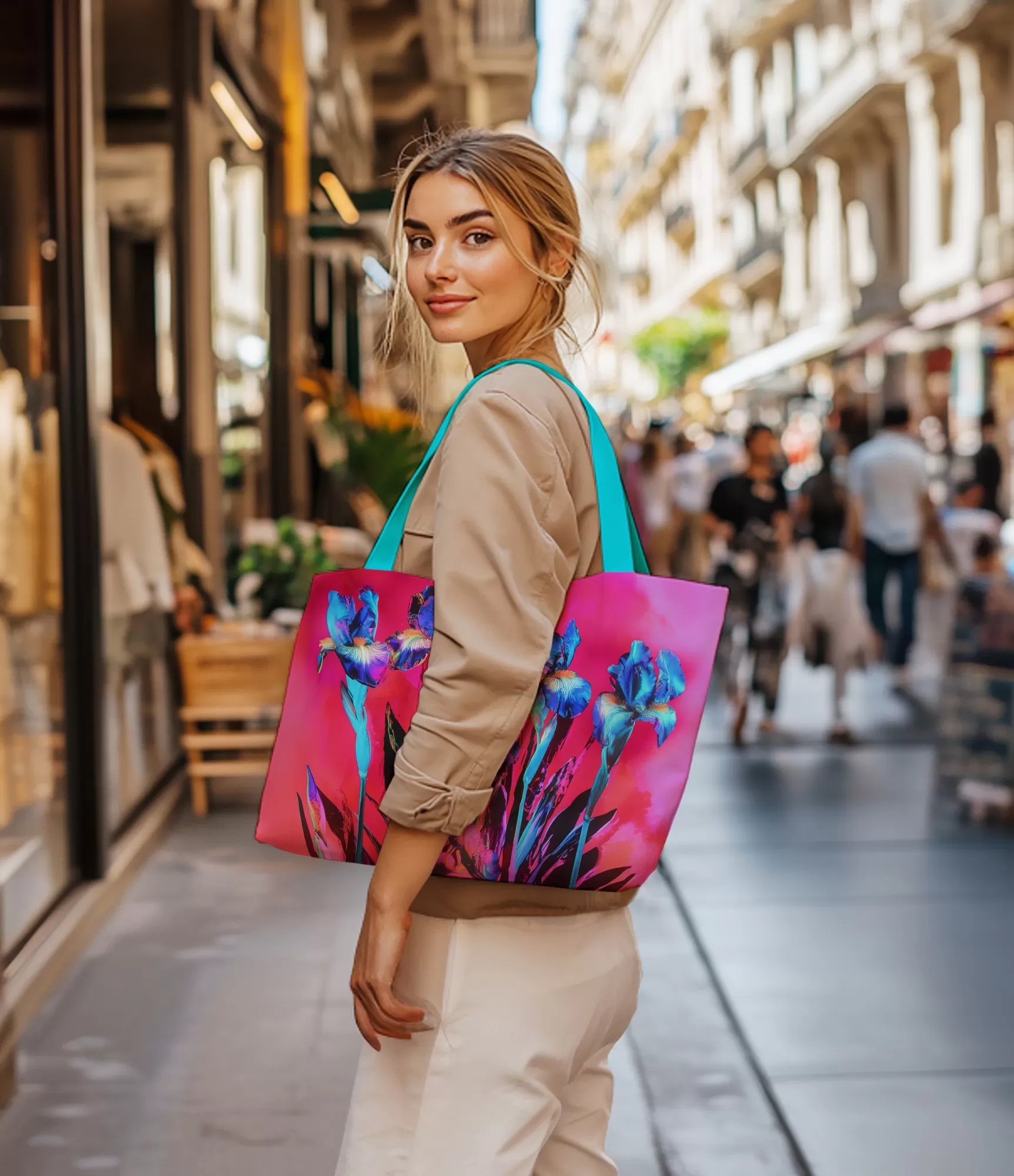 Ця жіноча сумка з кольоровим візерунком – унікальний та виразний вибір. Яскраві поєднання синього, жовтого, бірюзового та помаранчевого кольорів створюють сучасний і грайливий дизайн, який чудово доповнить будь-який образ. Це ідеальний аксесуар як для повсякденного носіння, так і для особливих випадків. Ця яскрава сумка з принтом може бути використана як практична пляжна сумка, щоденний аксесуар або навіть стати зіркою вашого літнього гардеробу.