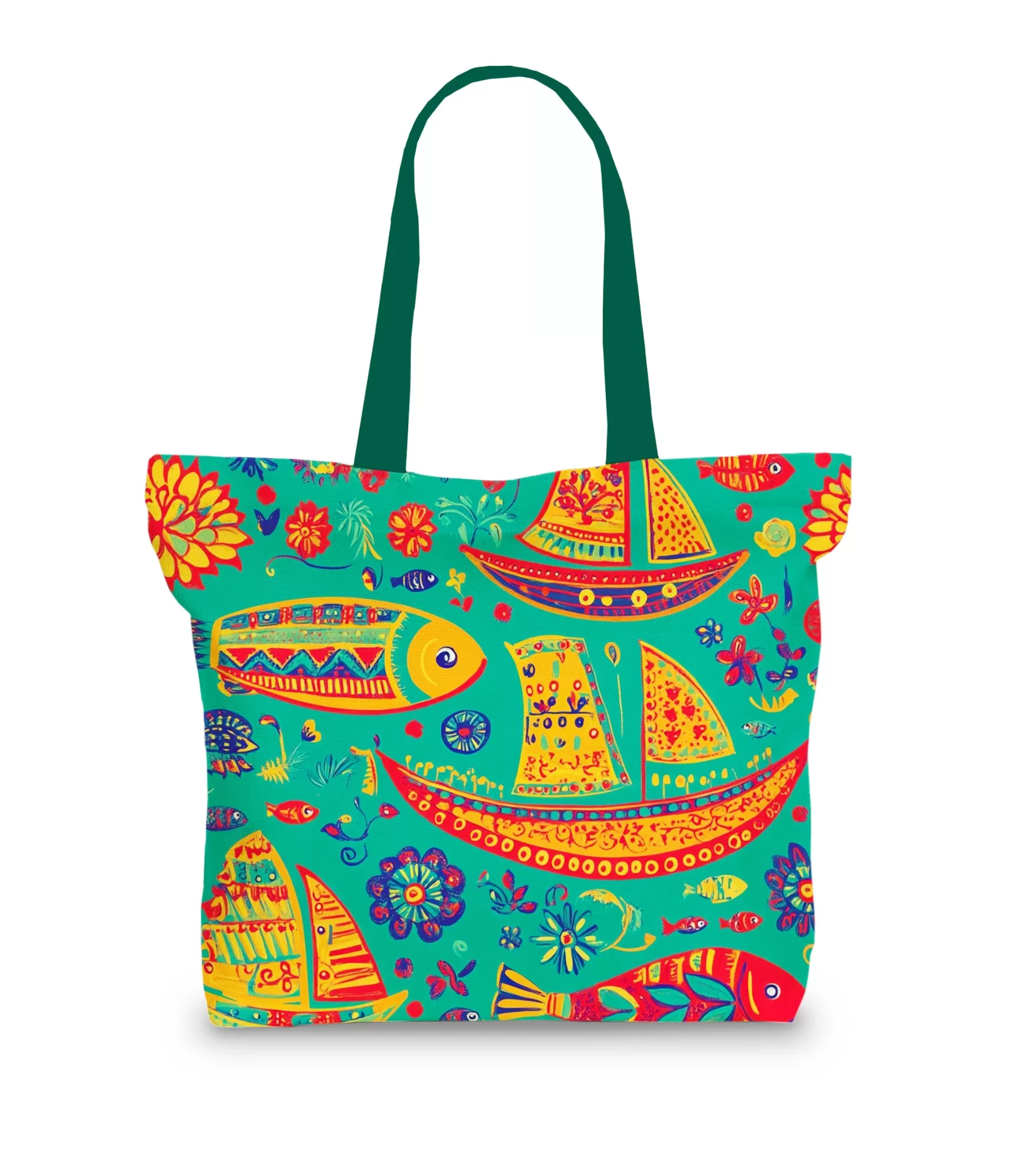 Ця жіноча сумка з кольоровим візерунком – унікальний та виразний вибір. Яскраві поєднання синього, жовтого, бірюзового та помаранчевого кольорів створюють сучасний і грайливий дизайн, який чудово доповнить будь-який образ. Це ідеальний аксесуар як для повсякденного носіння, так і для особливих випадків. Ця яскрава сумка з принтом може бути використана як практична пляжна сумка, щоденний аксесуар або навіть стати зіркою вашого літнього гардеробу.