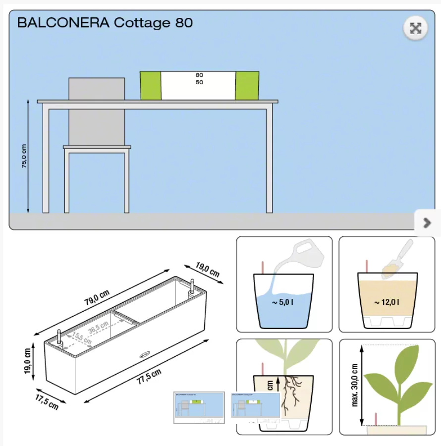 Всі ящики LECHUZA мають зовнішній ящик та систему поливу, що забезпечує кращий ріст рослин.