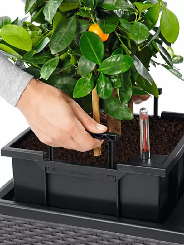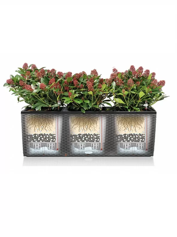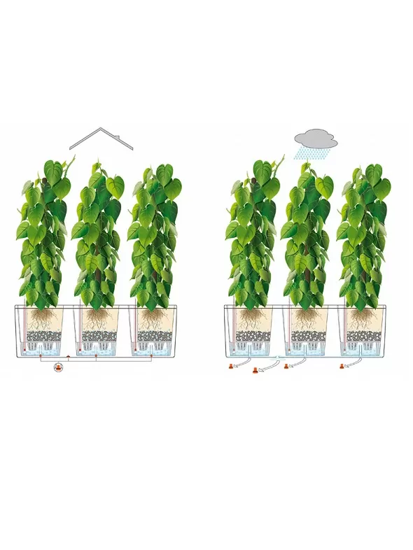 Усі ящики LECHUZA мають зовнішній ящик і систему поливу, що забезпечує кращий ріст рослин.